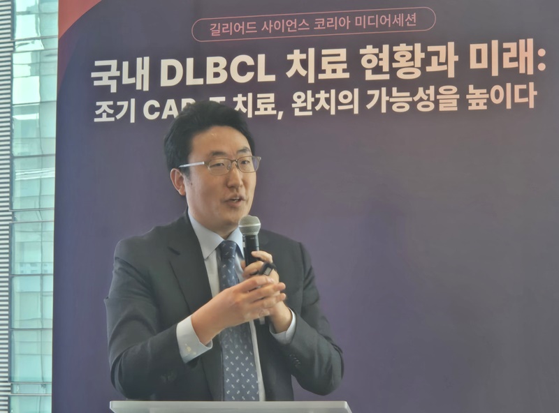 [메디칼타임즈=문성호 기자]혈액암 치료제 예스카타가 내년도 상반기 국내 출시를 예고하면서 임상현장 치료 패러다임 변화가 본격화될 전망이다.고가로 예상되는 치료제 가격을 고려했을 때 급여 적용 여부가 임상현장 안착에 있어 최대 관건이 될 것으로 보인다.서울성모병원 혈액내과 민기준 교수가 길리어드가 마련한 행사에 참석해 예스카타 국내 허가에 따라 변화될 임상현장 치료전략을 설명하고 있다.서울성모병원 민기준 교수(혈액내과)는 20일 길리어드 사이언스 코리아가 '국내 거대 B세포 림프종(DLBCL, Diffuse Large B-Cell Lymphoma) 치료 현황과 미래'를 주제로 한 행사에 참석해 예스카타를 활용한 임상현장 치료 전략을 소개했다.이 가운데 예스카타는 킴리아(티사젠렉류셀, 노바티스)에 이어 두 번째로 국내 본격 출시가 예고된 CAR-T 신약으로 적응증 확대에 빠르게 성공하며 글로벌 시장에 안착했다.특히 예스카타는 DLBCL 환자의 2차와 3차 치료 모두에 허가된 한국 최초의 CAR-T 치료제라는 점에서 주목해볼 만하다.구체적으로 예스카타는 ▲1차 화학요법 치료 이후 12개월 이내에 재발하거나 불응하는 DLBCL 성인 환자 치료 ▲2차 이상의 전신 치료 후 재발성 또는 불응성 DLBCL 및 원발성 종격동 B세포 림프종(PMBCL)이 있는 성인 환자 치료로 식약처 허가를 받았다. 현재 DLBCL 환자에서의 기존 표준치료는 화학면역요법을 시작으로, 고용량 항암화학요법과 조혈모세포이식까지 이어지는 복잡한 다단계 과정을 포함한다. 하지만 신규 거대 B세포 림프종(Large B-cell Lymphoma, 이하 LBCL) 환자의 약 60%만이 초기 치료에 반응하며, 나머지 40%는 재발하거나 반응하지 않아 추가적인 2차 치료 옵션이 필요한 상황.자연스럽게 CAR-T 치료제로 2차서부터 허가를 받은 예스카타의 존재감이 부각되는 지점이다.서울성모병원 민기준 교수는 "재발성 또는 불응성 DLBCL의 경우 1차 치료 후 조기 재발한 환자들은 특히 예후가 불량하고 이식에 대한 낮은 적합성(50%) 및 합의된 표준 치료가 부족해 많은 환자들이 여전히 세포독성 항암제로 치료받는 상황"이라고 설명했다.민기준 교수는 "1차 치료 이후 12개월 이내에 재발하거나 1차 치료에 불응하는 성인의 경우 예후가 불량해 적극적인 치료가 필요하다"며 "3차 치료에서 다른 CAR-T 치료제를 활용할 수 있지만 상대적으로 낮은 치료 성과를 기대할 수 있다는 점에서 한계는 여전하다"고 진단했다.이에 따라 길리어드는 내년 상반기 CAR-T 치료센터를 보유한 주요 대형병원을 대상으로 일정의 자체적인 인증을 거쳐 예스카타를 공급한다는 계획이다. 또한 길리어드는 지난 8월 식약처 허가 이후 건강보험심사평가원에 곧장 급여 신청서를 제출한 만큼 내년 이에 대한 논의도 본격 진행한다는 계획이다. 2차 치료에서의 급여 적용 여부가 예스카타 입장에서는 핵심이 될 전망인데, 일단 비급여라도 내년 상반기 예스카타를 임상현장에서 활용할 수 있을 것으로 기대된다.함께 자리한 길리어드 의학부 김성은 이사는 "예스카타는 다른 CAR-T 치료제로 비교해 상대적으로 냉장 상태로 보내진다는 측면 등 종합적인 면을 고려했을 때 제조 및 공급시간이 비교적 짧다"며 "빠르게 진행되는 DLBCL 환자 치료에 적합하다. 동시에 높은 세포 주입 성공률과 강한 초기 항 종양효과로 가교 항암 필요성이 적을 수 있다"고 강조했다.한편, 예스카타는 최근 몇 년 동안 글로벌 CAR-T 치료제 시장을 주도해왔지만 최근에는 매출 성장이 둔화하는 양상이다. 실제로 2021년 6억 9500만 달러(약 9664억원)에서 2022년 11억 6000만 달러(약 1조 6127억원)로 매출이 67% 급증했다. 이후에도 성장세는 지속됐다. 이 치료제는 2023년 14억 9800만 달러(약 2조 827억)를 기록하며 직전해보다 29% 증가했다. 여기에 지난해 예스카타는 15억 7000만 달러(약 2조 2000억원)를 기록하며 성장(전년 대비 5%)을 이어갔다.다만, 지난해부터 카빅티(실타캅타젠오토류셀, 얀센), 브레얀지(리소캅타진 마라류셀, BMS) 등 후발주자들이 급성장함에 따라 예스카타의 올해 2분기 매출은 3억 9300만 달러(약 5500억원)를 기록하며 전년 대비 5% 감소한 것으로 나타났다.