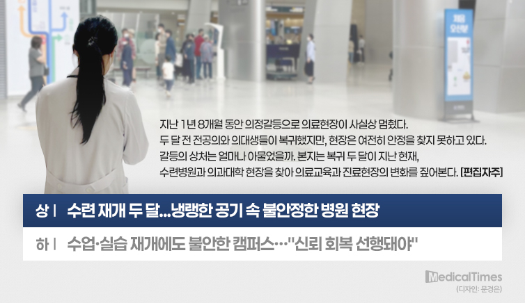 지난달 초 전공의들이 대거 복귀하며 각 수련병원은 인력 부족이라는 고민을 덜게 됐다. 외래진료와 입원, 수술 등 주요 진료과정이 빠르게 예년 수준을 회복하며 의료현장은 겉으로 보기엔 안정을 찾아가고 있다.
