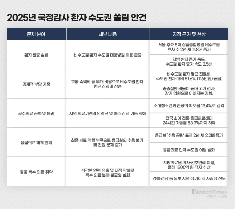 2025년 보건복지위원회 국정감사에서 환자 수도권 쏠림 문제가 집중 조명되면서 의료계 우려가 커지고 있다.