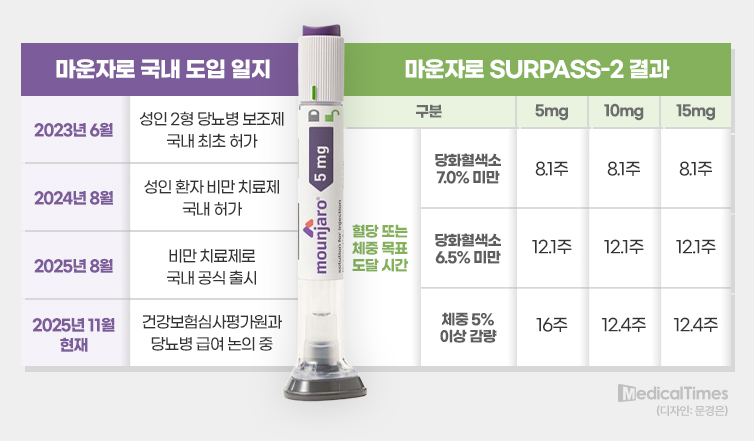 당초 동일 선상에서 논의 될 것으로 여겨졌던 경쟁약 오젬픽(세마글루타이드, 한국노보노디스크제약)이 마운자로보다 앞서 지난 10월 약평위 회의를 통과, 국민건강보험공단과 약가협상 단계에 돌입했기 때문이다.