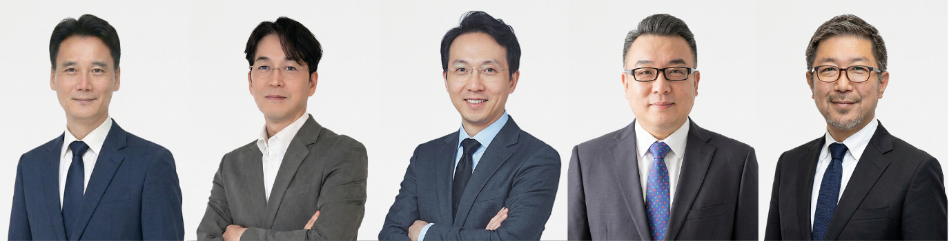 (왼쪽부터) 글로벌 영업총괄 김영철 상무, 동남아 총괄 김기중 상무, 판교 연구소장 민욱 상무, 미국 법인장 제이슨 김, 일본 법인장 다나카 야스히토