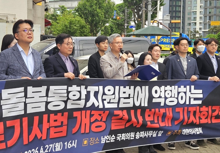 27일 의협은 서울 송파구 남인순 의원 사무실 앞에서 기자회견을 열고, 국회에서 추진 중인 '의료기사 등에 관한 법률 일부개정법률안'이 통합돌봄 정책 취지에 역행하고 국민 안전을 위협할 수 있다고 주장했다.