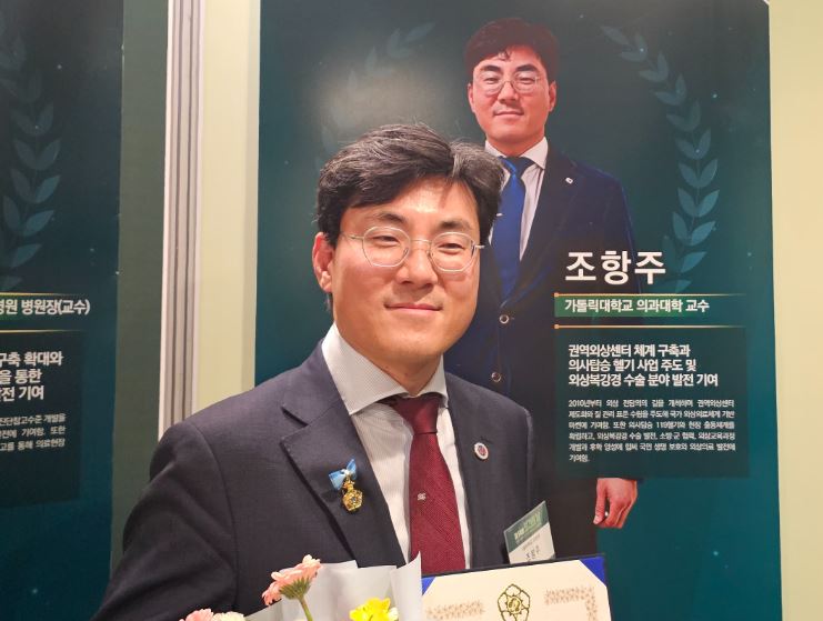 [메디칼타임즈=최선 기자] 가톨릭대학교 의정부성모병원 외상외과 조항주 교수가 7일 오후 2시 서울 중구 대한상공회의소에서 열린 제54회 보건의 날 기념행사에서 국무총리 표창을 수상했다.조항주 교수는 지난 2010년부터 외상 전담의로서 불모지와 같았던 국내 외상 의료 분야의 길을 개척해 왔다. 특히 권역외상센터의 제도화와 질 관리 표준 수립을 주도하며 국가 외상 의료 체계의 안정적인 기반을 마련하는 데 핵심적인 역할을 수행했다.주요 공로로는 응급 환자의 골든타임 확보를 위한 의사 탑승 119헬기 및 현장 출동 체계 확립이 꼽힌다. 이를 통해 중증 외상 환자의 생존율을 획기적으로 높이는 시스템 혁신을 이뤄냈다. 또한 외상 복강경 수술의 발전을 이끌고 소방 및 군과의 긴밀한 협력 관계를 구축하는 등 다각적인 노력을 기울여 왔다.이외에도 조항주 교수는 외상 교육 과정 개발과 후학 양성에 힘쓰며 국내 외상 의료 인프라의 지속 가능한 발전과 국민 생명 보호에 기여한 점을 높게 평가받았다.조항주 교수는 수상 소감을 통해 "외상 환자의 생명을 지키기 위해 헌신해 온 노력을 인정받아 영광이다"라며, "앞으로도 권역외상센터의 의료 질 향상을 통해 국민들이 언제 어디서든 안전하게 전문적인 외상 진료를 받을 수 있도록 최선을 다하겠다"고 밝혔다.