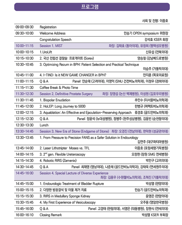 올해는 최근 큰 관심을 받고 있는 최소 침습 전립선비대증 수술법과 전통적인 수술법의 발전된 최선 지견을 공유한다. 특히 유로리프트(Urolift), 플로게이트, 아이틴드(I-Tind)를 소개하는 세견이 마련돼 있어 각각의 장단점을 비교해볼 수 있는 좋은 기회가 될 전망이다.