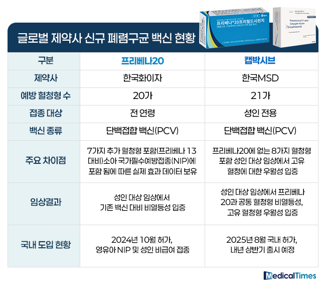 이 같이 한국화이자가 프리베나20을 앞세워 주도권 유지에 나선 가운데 한국MSD는 내년 상반기 성인 전용 21가 백신은 캡박시브 출시를 예고하며 맞불을 놨다.