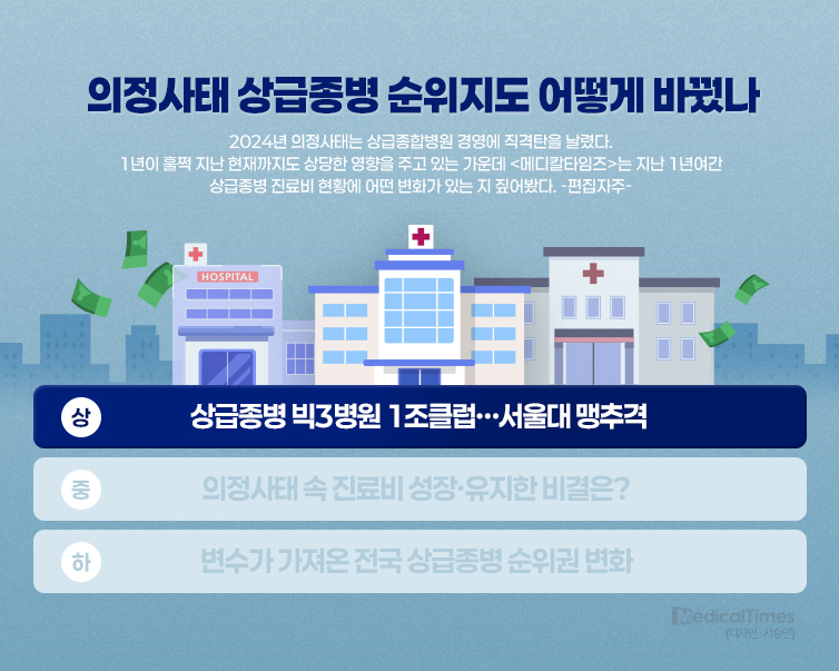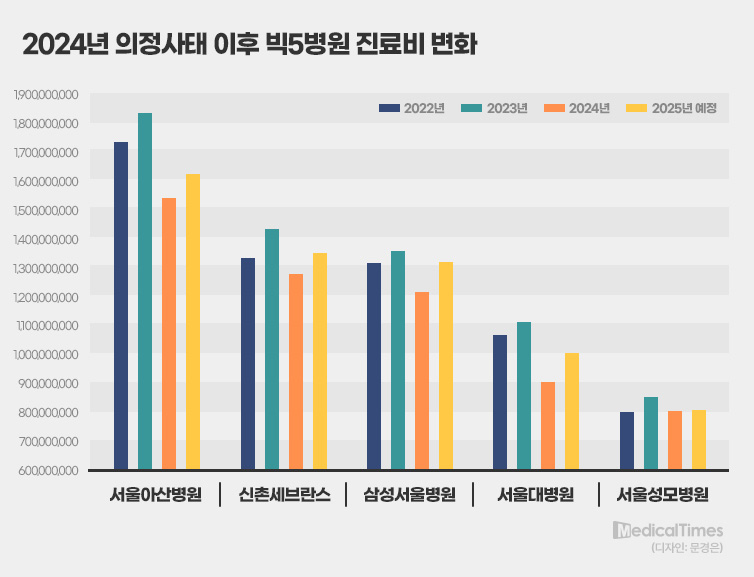 2024년 의정사태라는 초유의 사태를 겪으면서 소위 빅5병원의 진료비 지형도가 요동쳤다.