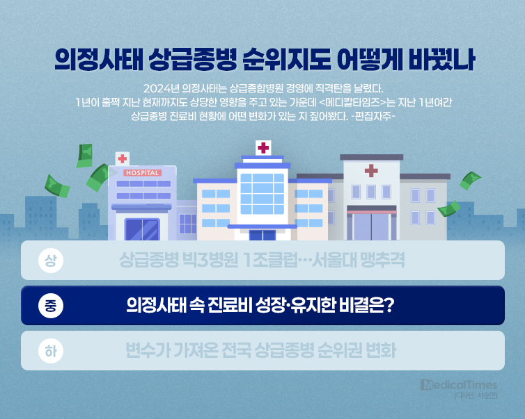 2024년 의정사태로 대부분의 상급종합병원이 두자릿수 마이너스 성장을 기록하는 와중에도, 일부 대학병원들은 오히려 성장하거나 전년 수준을 유지하며 '저력'을 보였다.