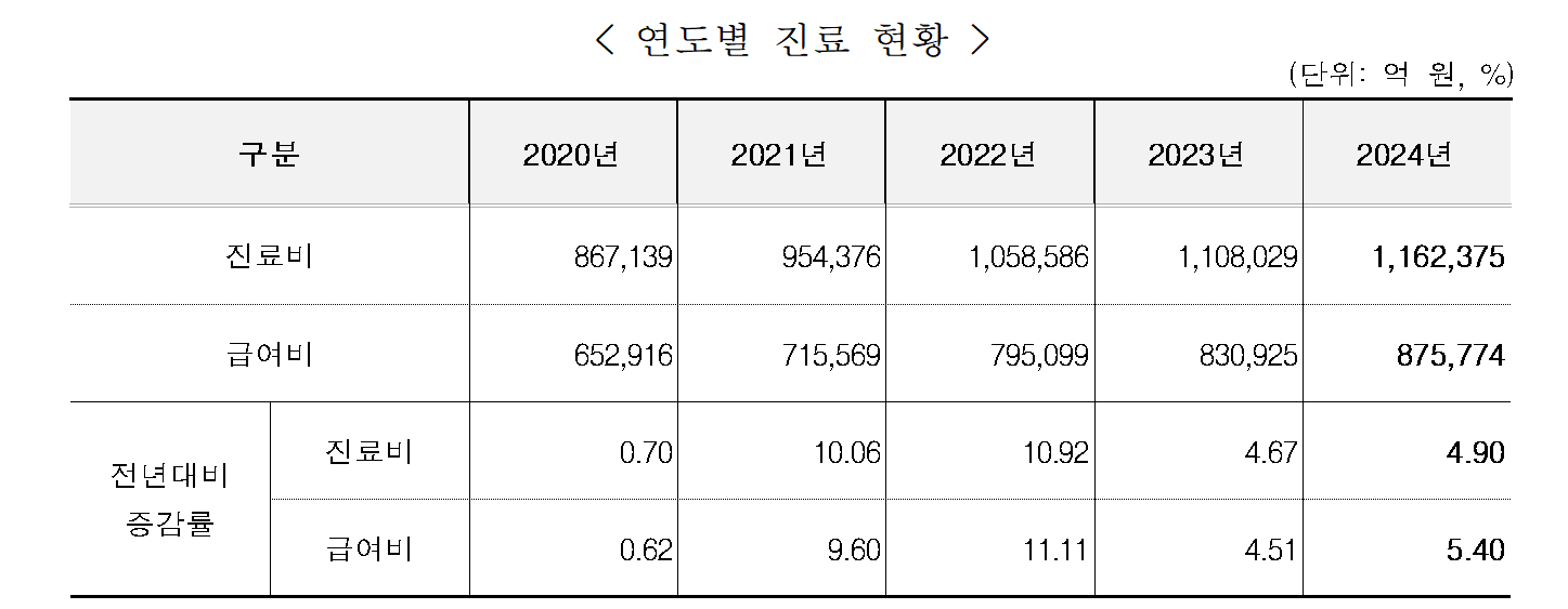 건강보험 진료비 116조 전년대비 4.9% 증가…진료비 75% 차지