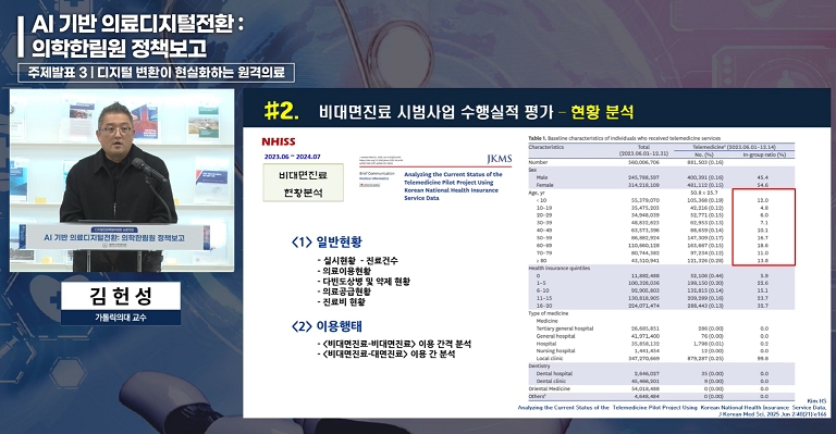 김 교수는 이런 문제를 해결하기 위해 각 임상학회와 연계한 구체적인 가이드라인 개발이 필요하다고 강조했다. 단순히 질환별 기준을 정하는 것을 넘어, 어떤 상황에서 비대면 진료를 배제해야 하는지 명확한 프로토콜을 정립해야 시행착오를 줄일 수 있다는 제언이다.