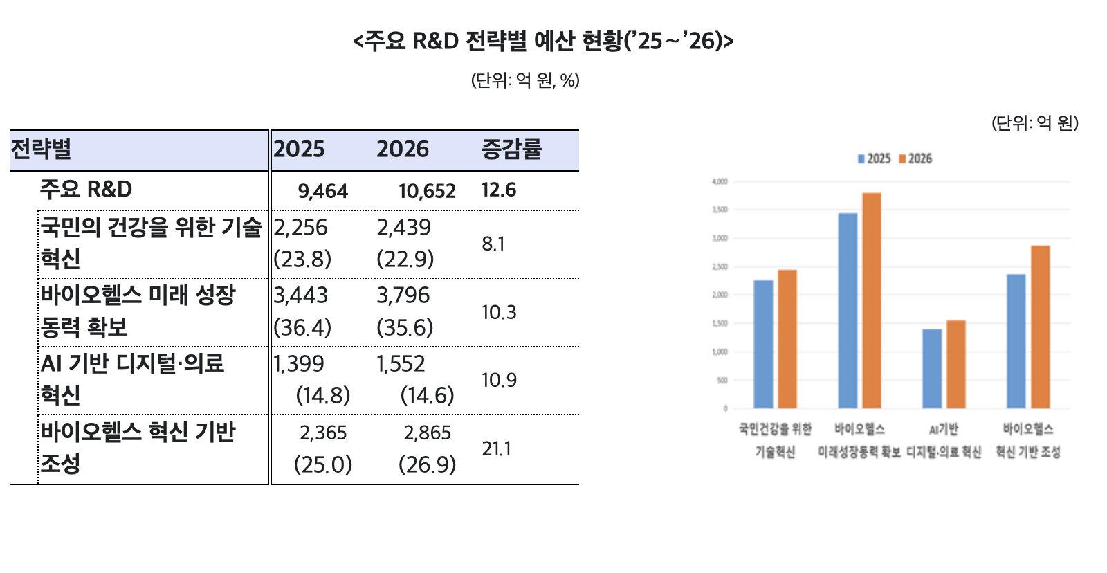 보건복지부(장관 정은경)와 한국보건산업진흥원(원장 차순도)은 31일(수) ▲2026년 보건복지부 R&D 사업 통합 시행계획을 발표하고 ▲보건의료 연구개발 19개 사업에 대한 연구개발과제를 1차 통합 공고했다.