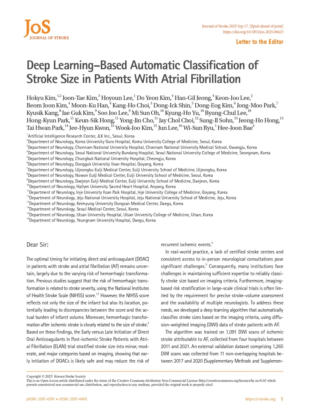 심방세동 뇌졸중 환자에서 치료 판단의 기준점을 정량화했다는 점에서, 뇌–심장 연계 의료 AI의 출발점으로 재조명되고 있다.