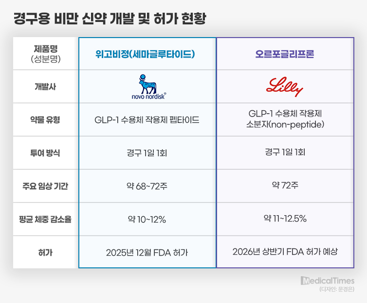이에 뒤질세라 일라이 릴리도 경구용 비만 치료제로 개발 중인 '오르포글리테론'을 올해 상반기 FDA 허가를 목표로 추진 중이다.