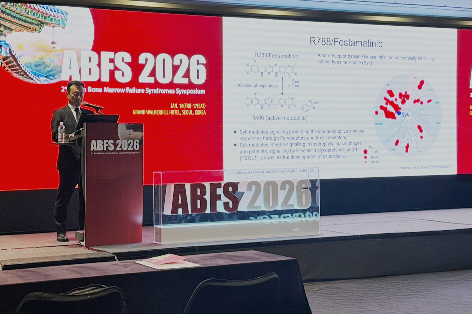 쿠와나 교수는 "기존 치료제들이 주로 혈소판 생성을 촉진하는 것과 달리 포스타마티닙은 대식세포 내 신호전달에 관여하는 Syk를 억제해 혈소판 파괴 경로를 차단한다"며 "면역세포의 한 종류인 B세포의 자가항체 생성 신호에도 영향을 줄 수 있는 독특한 작용기전을 가진다"고 설명했다.