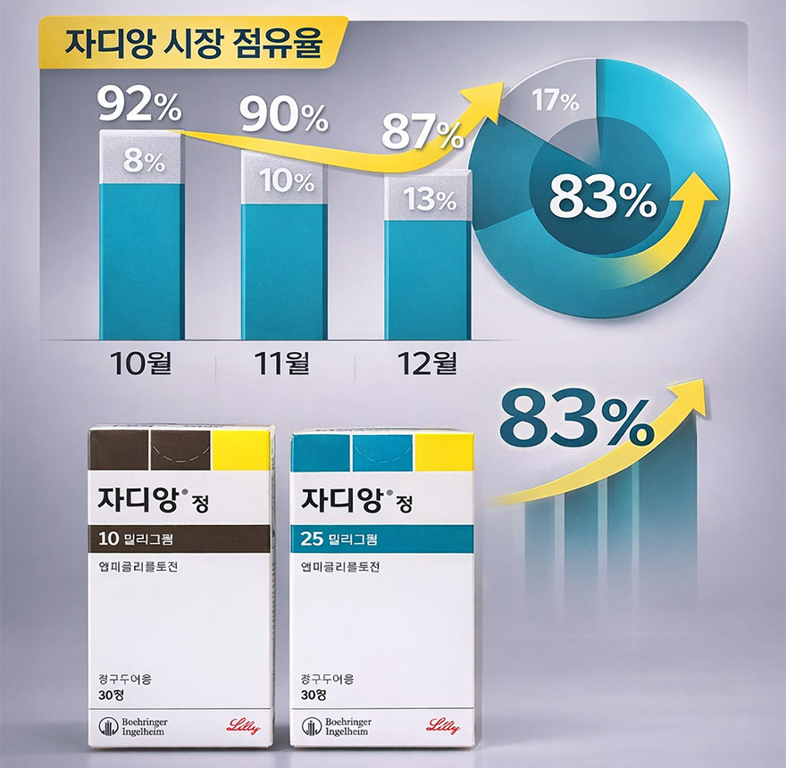또 다른 관계자는 "자디앙이 여전히 압도적 1위이고 제네릭 전체를 합쳐도 자디앙의 1/4 수준에 불과하지만, 제네릭 침투가 시작된 만큼 2026년 자디앙의 독점 구도의 변화가 어떻게 변화할 지 지켜봐야 한다"고 말했다.