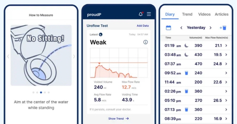 proudP 앱은 소변이 변기 물에 닿을 때 발생하는 소리를 분석하는 음향 배뇨 측정 기술을 활용한다. 별도 장비 없이 스마트폰을 변기에 향하게 놓고 소변을 보면 앱이 최대 배뇨 속도와 배뇨량을 측정해 알려주는 것이 특징이다.