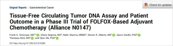 이번 연구는 다기관 3상 임상시험 Alliance N0147 참여 환자 가운데 분석이 가능한 2260명의 혈장 샘플을 대상으로 수술 후 4~8주 시점에 채혈한 혈액에서 순환종양 DNA(ctDNA)를 평가해 재발과의 연관성을 분석했다.