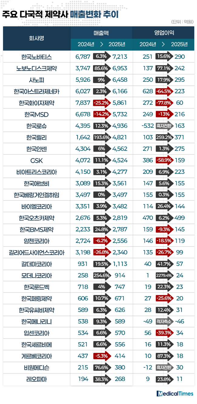 [메디칼타임즈=문성호 기자] 글로벌 제약사들의 2025년 국내 성적표는 '혁신 신약'이 '전통 강자'를 밀어내는 급격한 세대교체의 현장이었다.