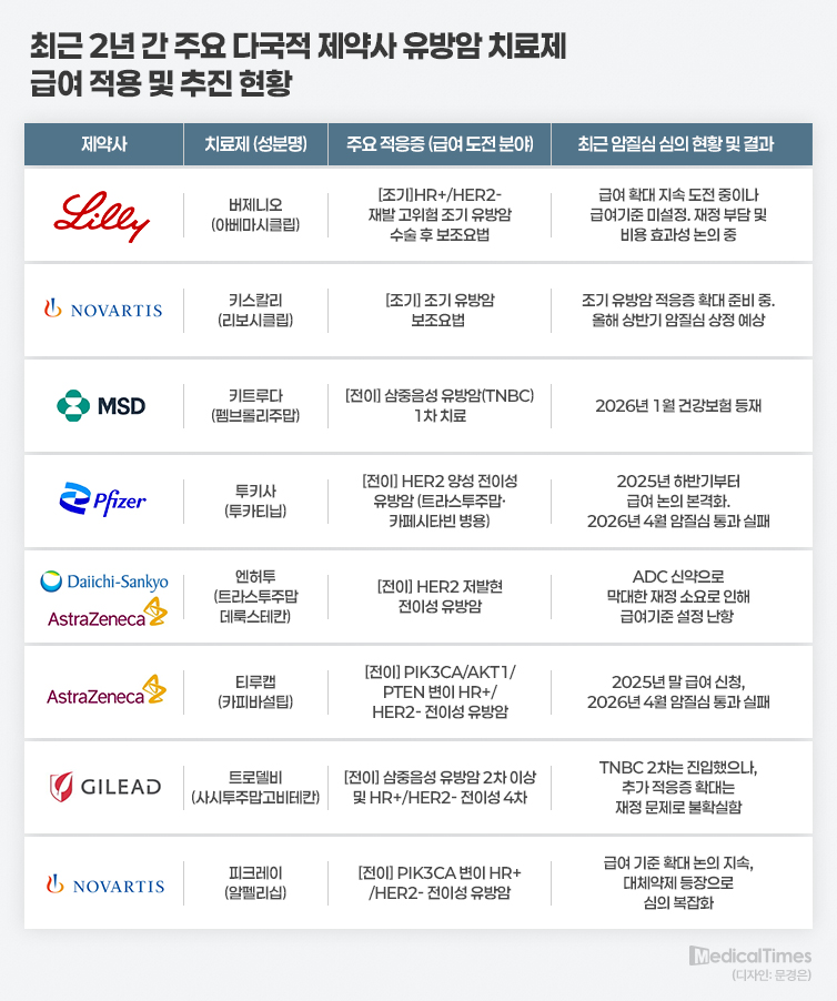 특히 유방암 분야 신약의 국내 허가와 급여 확대 이슈가 맞물리며, 의료진을 향한 마케팅 경쟁과 함께 현실적인 급여 정책 수립을 요구하는 전문가들의 목소리도 커지고 있다.