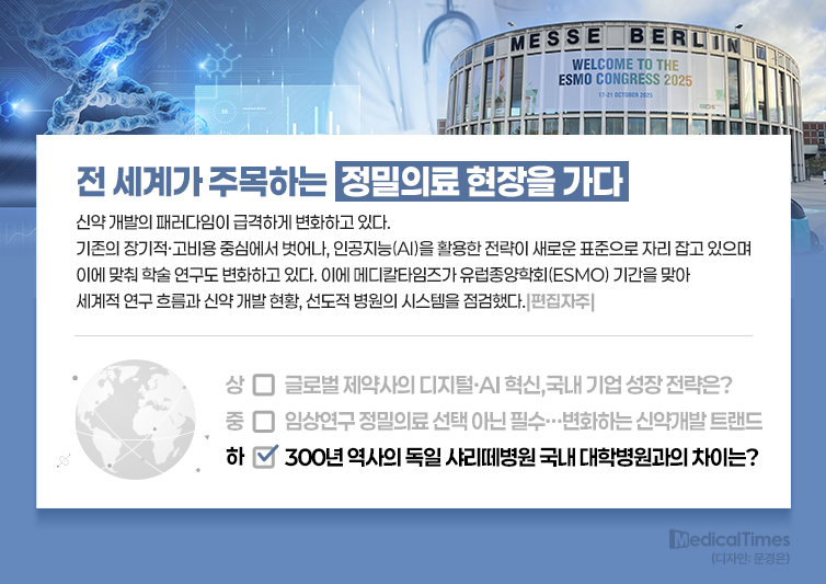 그는 이어 "모든 교수들은 이 환자에게 어떠한 치료법을 적용해 어떠한 순서로 최상의 결과를 낼 수 있는가에 집중하고 있으며 이러한 고민들은 유럽을 넘어 세계적 치료 가이드라인의 재설정과 신약 개발의 기반이 된다"며 "샤리테에서 더 많은 혁신과 새로운 치료 접근법이 탄생하는 기반"이라고 밝혔다.