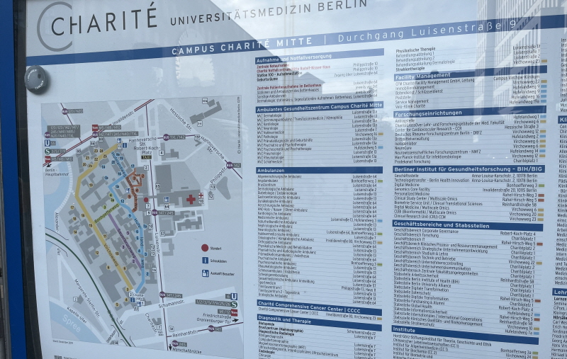 독일 베를린에 위치한 샤리테 대학병원(Charité Universitätsmedizin Berlin)을 보여주는 단어들이다.