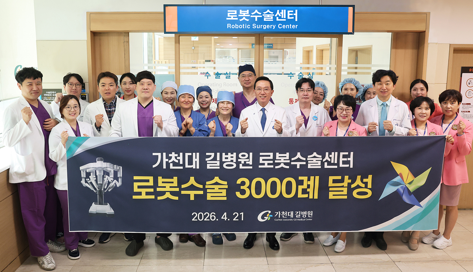 가천대 길병원 로봇수술센터는 4월 기준 누적 총 3000례 달성 및 Retzius 보존 전립선암 로봇수술 900례 달성을 기념하는 행사를 21일 암센터에서 가졌다.
