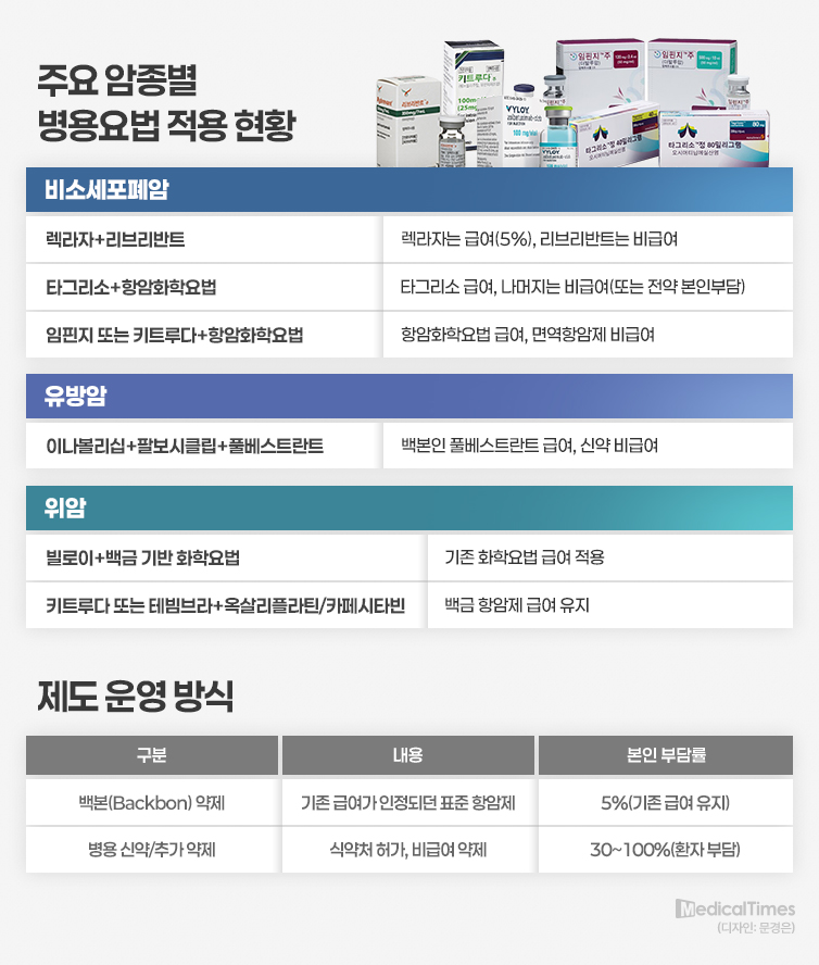 다시 말해, 기존에 급여로 적용되고 있는 약제에 항암신약을 추가한 병용요법의 기존 치료제는 급여로 유지하겠다는 뜻이다.