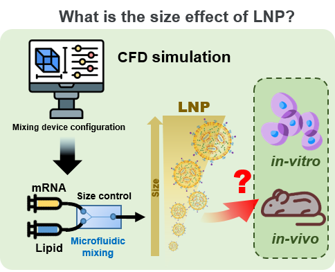 이는 향후 복잡한 장비 없이도 단순한 구조의 시스템으로 지질나노입자 크기를 정밀하게 조절할 수 있는 가능성을 보여주며, mRNA 치료제 대량 생산과 공정 표준화에도 중요한 기초 자료가 될 것으로 기대된다.