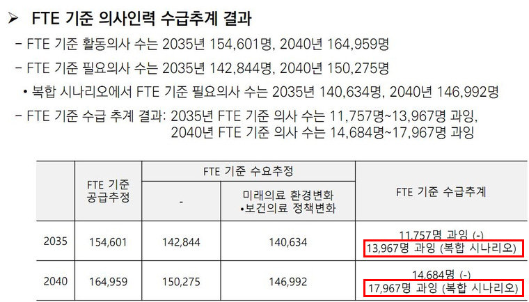 ■ "의사 과잉 시대 온다" FTE 기준 시 정반대 결과