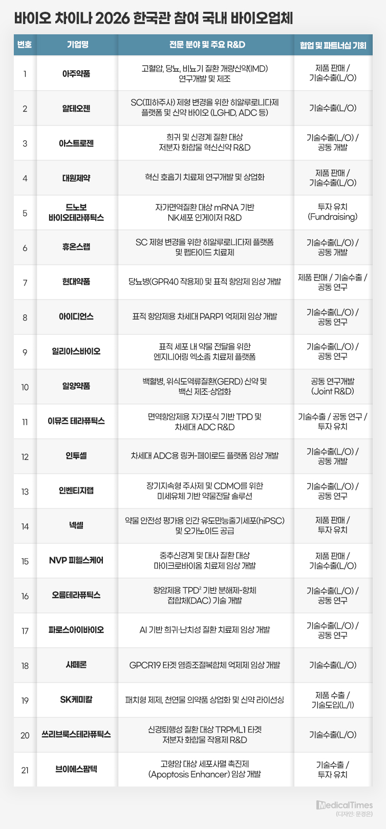 국내 제약바이오 기업 21개사는 과거 개별 기업 중심의 참가 방식에서 벗어나, 전문 분야별로 결집해 체계적인 지원을 받으며 현지 파트너들의 높은 관심을 이끌어냈다.